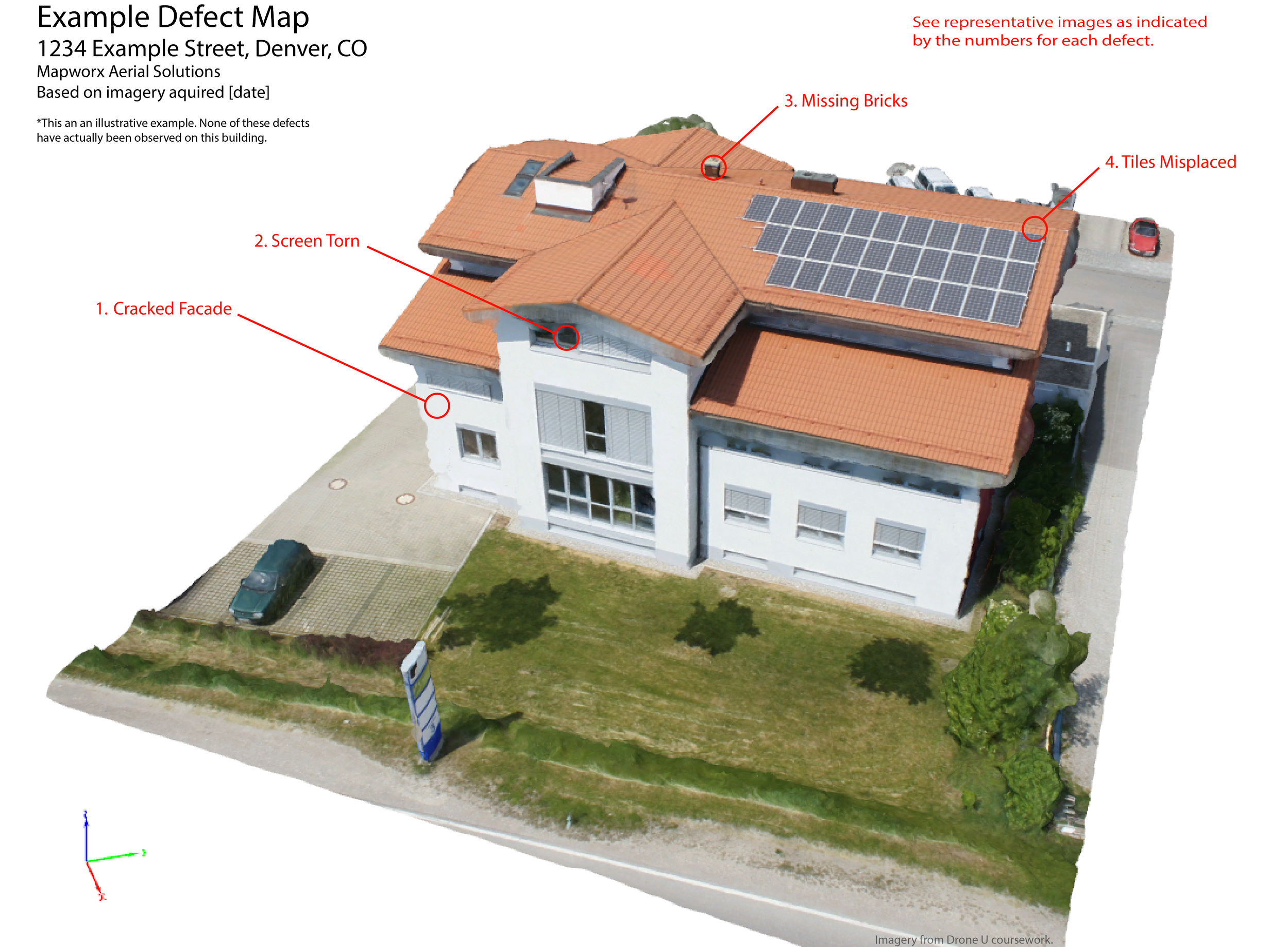 Clear, organized reports that combine imagery with labels, notes, and locations of observed issues. Annotated defect reports make it easy to communicate findings, prioritize repairs, and share results with teams or clients.
